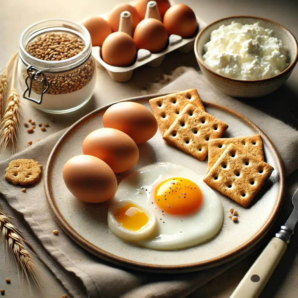 Eieren zijn een van de goedkoopste eiwitbronnen en ontzettend veelzijdig. Een simpel, maar voedzaam ontbijt of lunch is gekookte eieren met volkoren crackers en cottage cheese.